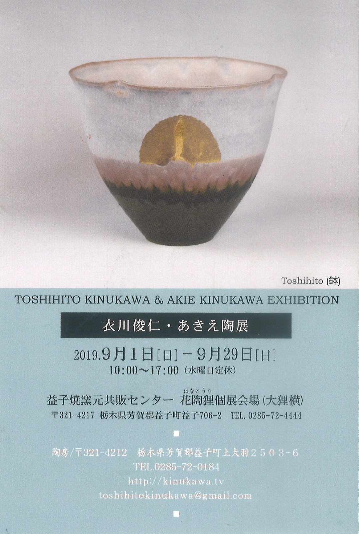 9月花陶里個展ギャラリーのお知らせ 衣川俊仁・あきえ陶展 9月1日~9月29日 水曜定休 花陶里ギャラリーまで、どうぞお越し下さいませ。